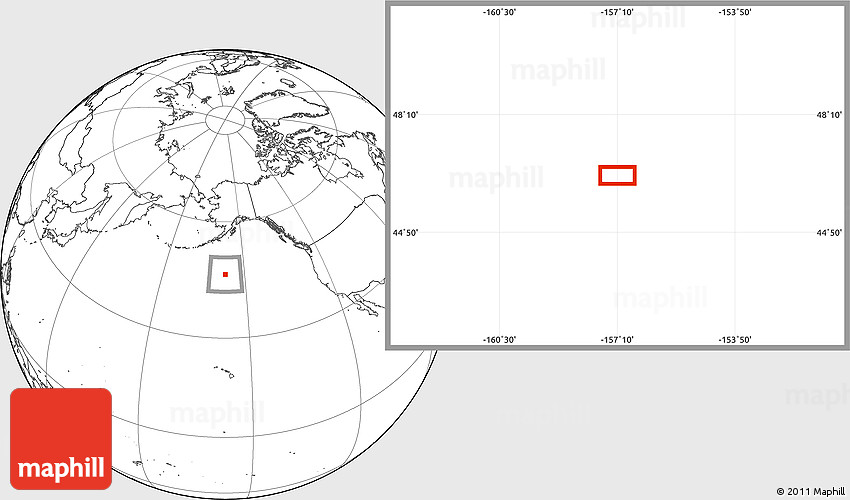 Maphill is a collection of map images. This image combines a blank map with the globe centered on the area around 46° 26' 14" N, 157° 10' 30" W. Use the buttons under the image to switch to different map types.