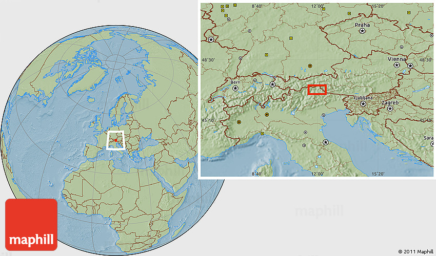 Maphill is a collection of map images. This image combines a savanna style map with the globe centered on the area around 46° 51' 18" N, 11° 58' 29" E. Use the buttons under the image to switch to different map types.