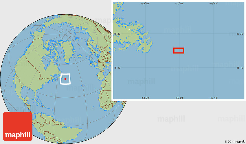 The value of Maphill lies in the possibility to look at the same area from several perspectives. Maphill presents the map of the area around 46° 51' 18" N, 50° 4' 30" W in a wide variety of map types and styles.