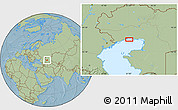 Maphill is a collection of map images. This image combines a savanna style map with the globe centered on the area around 46° 51' 18" N, 51° 4' 30" E. Use the buttons under the image to switch to different map types.
