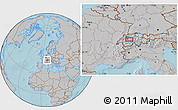 Maphill is a collection of map images. This image combines a gray map with the globe centered on the area around 46° 51' 18" N, 7° 43' 29" E. Use the buttons under the image to switch to different map types.
