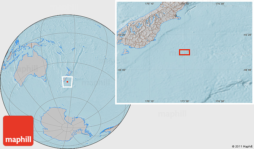 Maphill is a collection of map images. This image combines a gray map with the globe centered on the area around 46° 59' 36" S, 173° 28' 29" E. Use the buttons under the image to switch to different map types.
