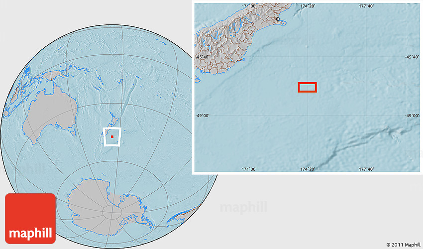 Maphill is a collection of map images. This image combines a gray map with the globe centered on the area around 47° 24' 32" S, 174° 19' 29" E. Use the buttons under the image to switch to different map types.