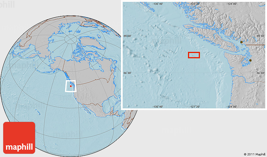 Maphill is a collection of map images. This image combines a gray map with the globe centered on the area around 48° 5' 50" N, 127° 25' 30" W. Use the buttons under the image to switch to different map types.