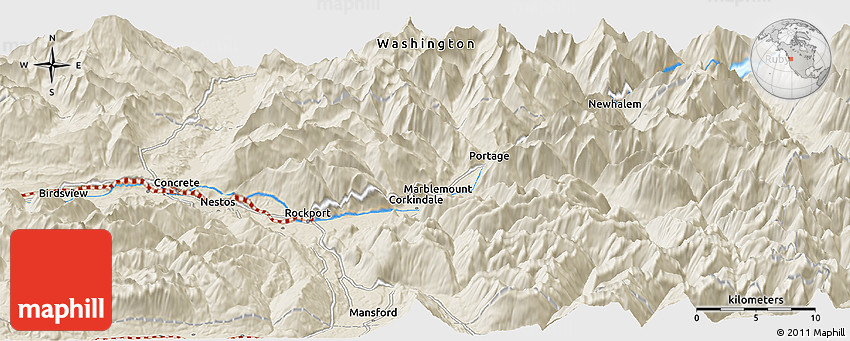 Embed the above shaded relief panoramic map of the area around 48° 30' 27" N, 121° 28' 29" W into your website. Enrich your blog with quality map graphics. Make the web a more beautiful place.