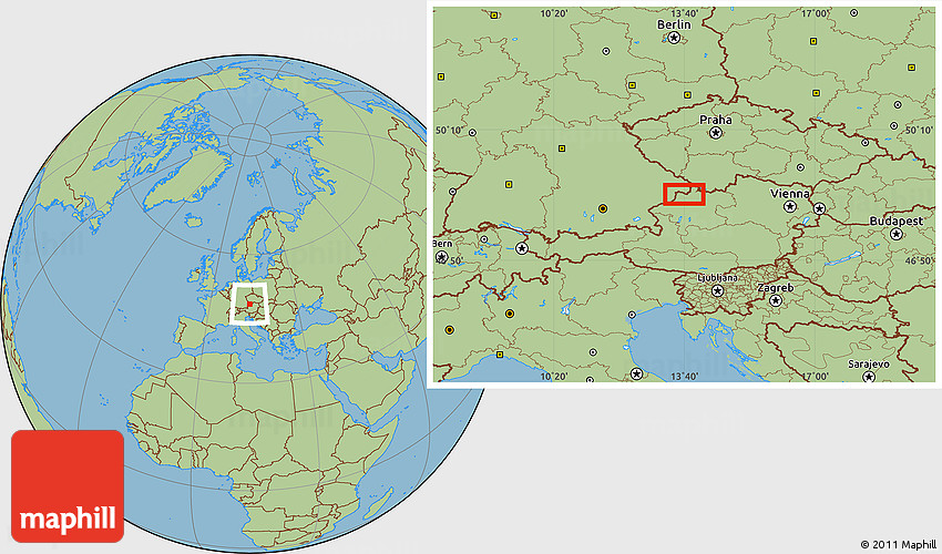 Maphill is a collection of map images. This image combines a savanna style map with the globe centered on the area around 48° 30' 27" N, 13° 40' 30" E. Use the buttons under the image to switch to different map types.