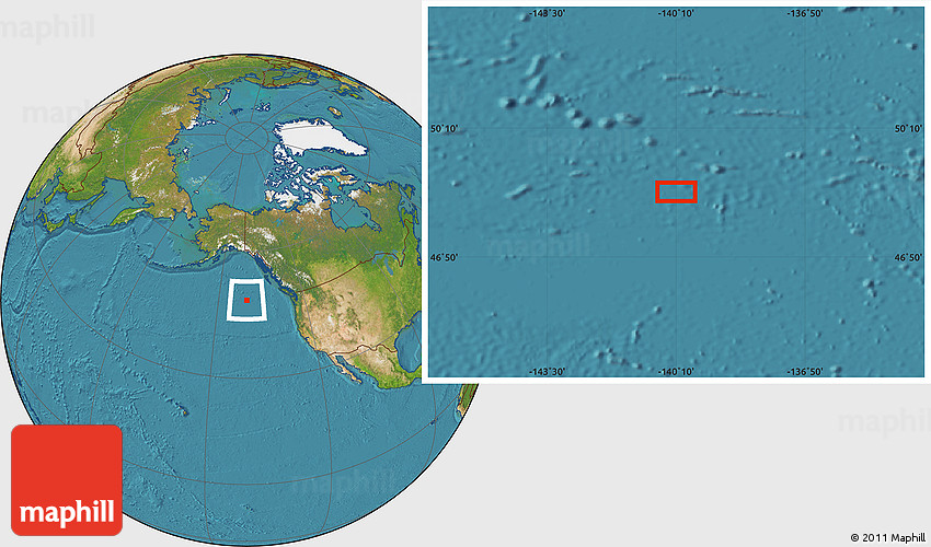 Maphill is a collection of map images. This image combines a satellite map with the globe centered on the area around 48° 30' 27" N, 140° 10' 30" W. Use the buttons under the image to switch to different map types.