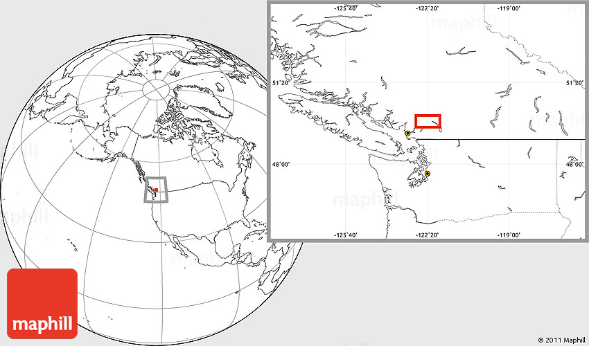 Maphill is a collection of map images. This image combines a blank map with the globe centered on the area around 49° 43' 37" N, 122° 19' 29" W. Use the buttons under the image to switch to different map types.
