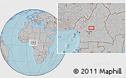 Maphill is a collection of map images. This image combines a gray map with the globe centered on the area around 4° 53' 57" N, 11° 58' 29" E. Use the buttons under the image to switch to different map types.