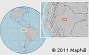 The gray location map represents one of several map types and styles available. Look at the area around 4° 1' 30" S, 75° 34' 29" W from different perspectives.