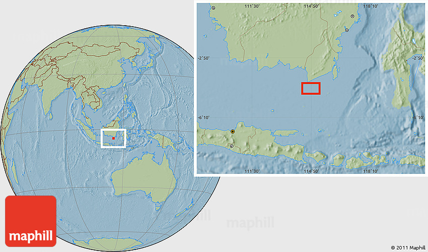 Maphill is a collection of map images. This image combines a savanna style map with the globe centered on the area around 4° 32' 58" S, 114° 49' 29" E. Use the buttons under the image to switch to different map types.