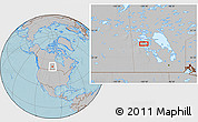 The gray location map represents one of several map types and styles available. Look at the area around 52° 30' 23" N, 100° 13' 29" W from different perspectives.