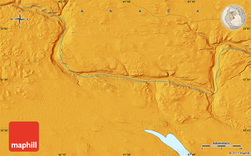 The value of Maphill lies in the possibility to look at the same area from several perspectives. Maphill presents the map of the area around 52° 53' 45" N, 61° 58' 30" W in a wide variety of map types and styles.