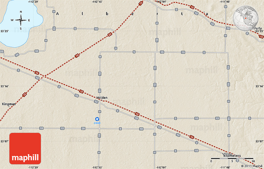 The value of Maphill lies in the possibility to look at the same area from several perspectives. Maphill presents the map of the area around 53° 17' 0" N, 112° 7' 30" W in a wide variety of map types and styles.