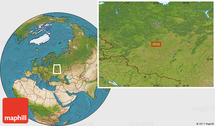 Maphill is a collection of map images. This image combines a satellite map with the globe centered on the area around 53° 40' 8" N, 37° 28' 30" E. Use the buttons under the image to switch to different map types.