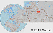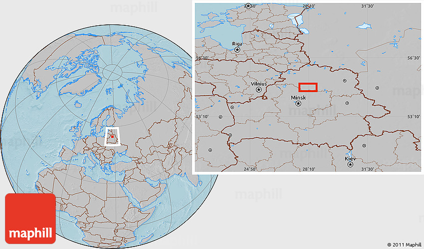 Maphill is a collection of map images. This image combines a gray map with the globe centered on the area around 54° 48' 50" N, 28° 7' 30" E. Use the buttons under the image to switch to different map types.