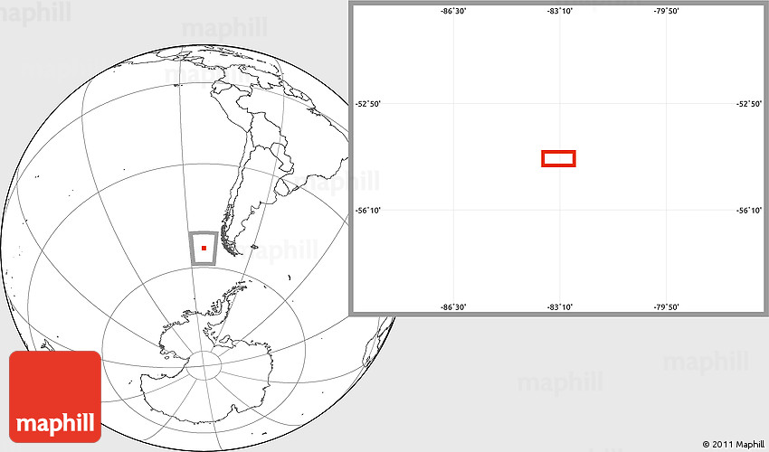 Maphill is a collection of map images. This image combines a blank map with the globe centered on the area around 54° 33' 39" S, 83° 13' 29" W. Use the buttons under the image to switch to different map types.