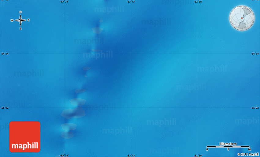 Maphill is a collection of map images. This physical map of the area around 54° 56' 24" S, 83° 13' 29" W is one of them. Click on the Detailed button under the image to switch to a more detailed map.