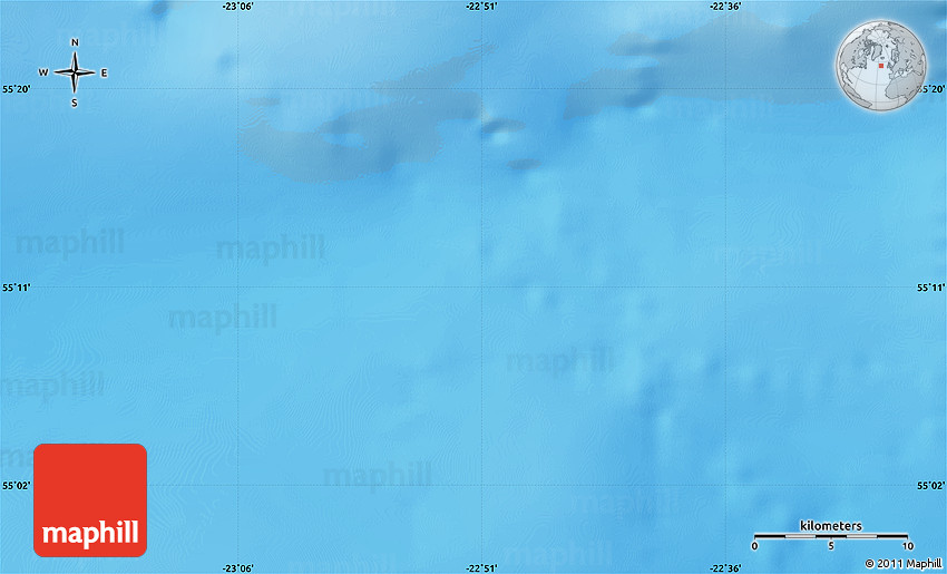 Maphill is a collection of map images. This shaded relief map of the area around 55° 11' 31" N, 22° 52' 30" W is one of them. Click on the Detailed button under the image to switch to a more detailed map.