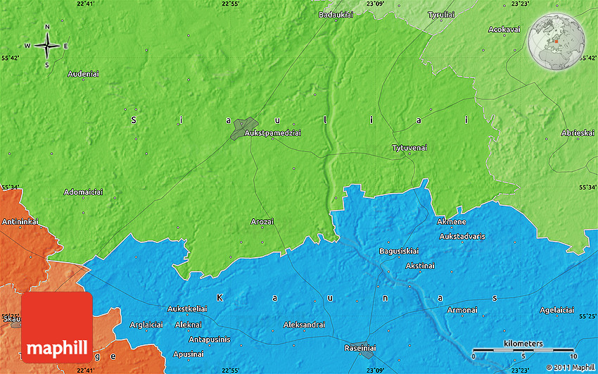Maphill is a collection of map images. This political map of the area around 55° 34' 4" N, 23° 1' 29" E is one of them. Click on the Detailed button under the image to switch to a more detailed map.