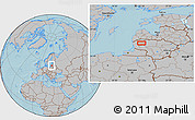 Maphill is a collection of map images. This image combines a gray map with the globe centered on the area around 55° 56' 31" N, 22° 10' 29" E. Use the buttons under the image to switch to different map types.