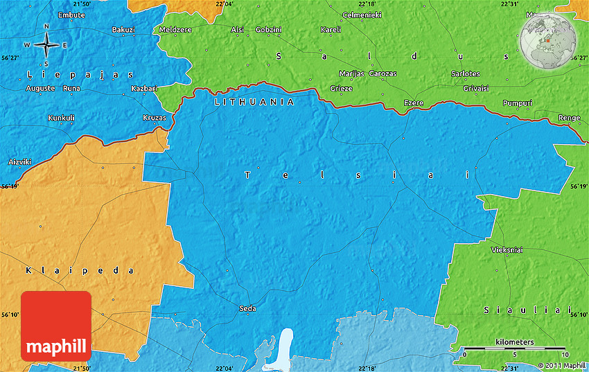 Maphill is a collection of map images. This political map of the area around 56° 18' 50" N, 22° 10' 29" E is one of them. Click on the Detailed button under the image to switch to a more detailed map.
