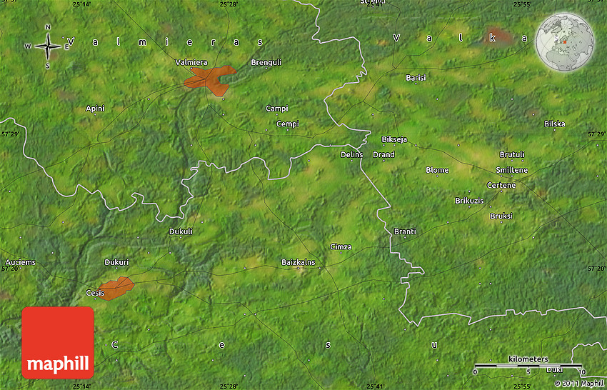 Maphill is a collection of map images. This satellite map of the area around 57° 25' 7" N, 25° 34' 30" E is one of them. Click on the Detailed button under the image to switch to a more detailed map.