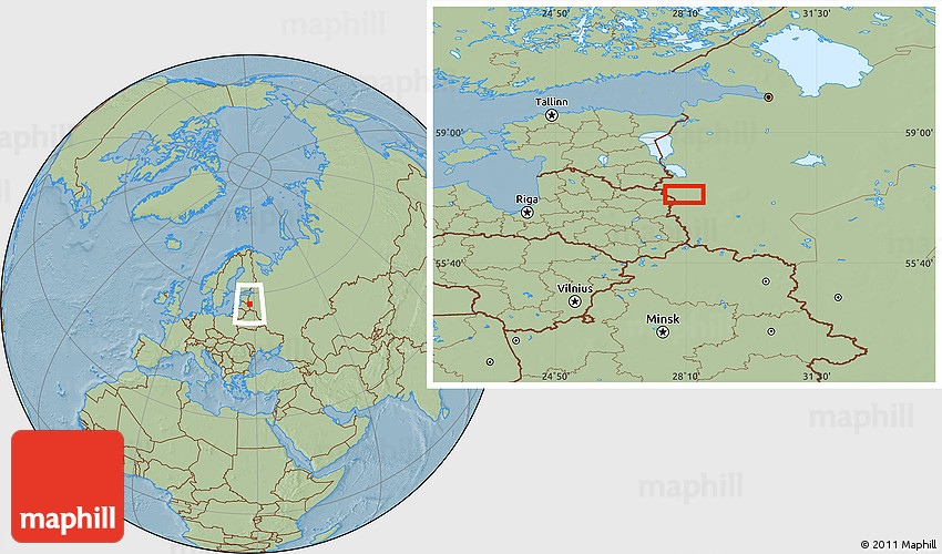 Maphill is a collection of map images. This image combines a savanna style map with the globe centered on the area around 57° 25' 7" N, 28° 7' 30" E. Use the buttons under the image to switch to different map types.