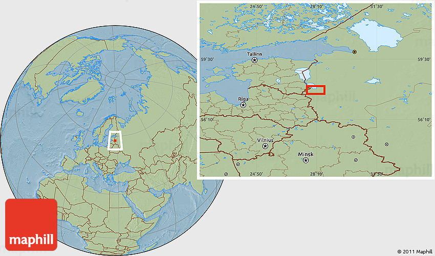 Maphill is a collection of map images. This image combines a savanna style map with the globe centered on the area around 57° 46' 59" N, 28° 7' 30" E. Use the buttons under the image to switch to different map types.