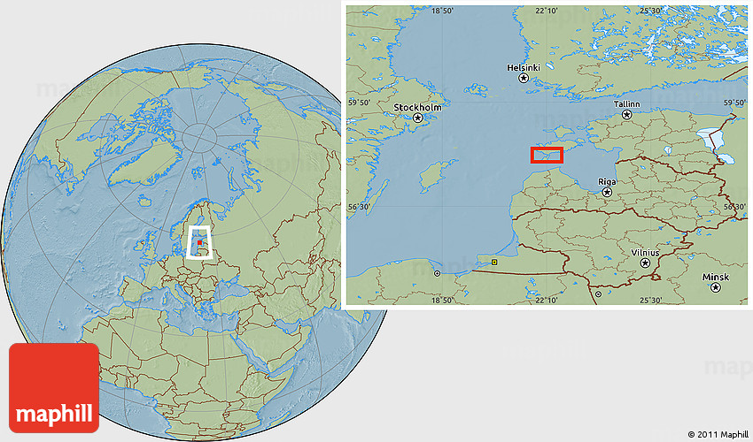 Maphill is a collection of map images. This image combines a savanna style map with the globe centered on the area around 58° 8' 44" N, 22° 10' 29" E. Use the buttons under the image to switch to different map types.