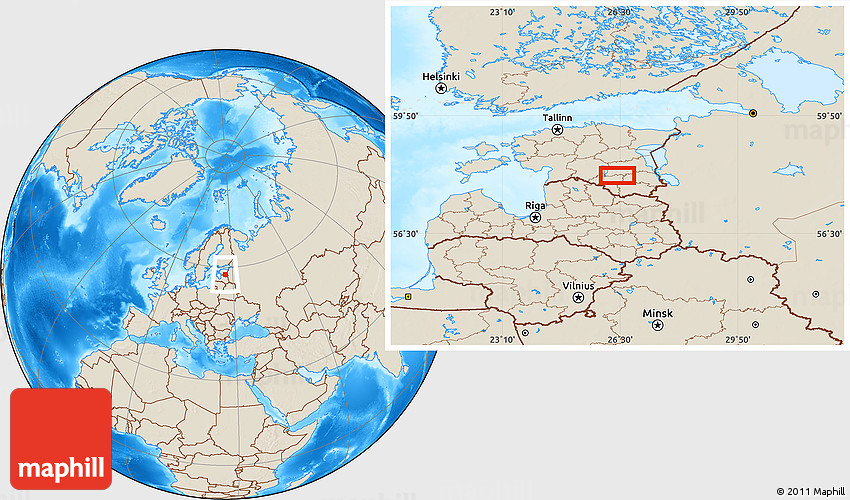 Maphill is a collection of map images. This image combines a shaded relief map with the globe centered on the area around 58° 8' 44" N, 26° 25' 29" E. Use the buttons under the image to switch to different map types.