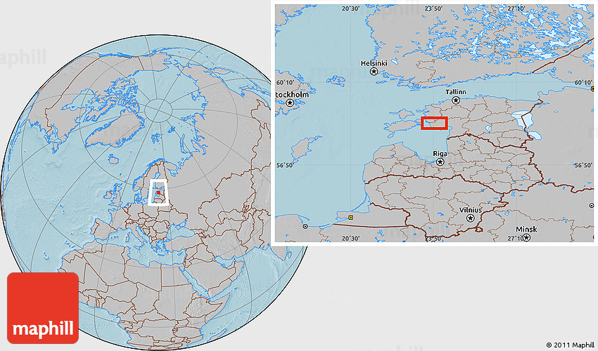 Maphill is a collection of map images. This image combines a gray map with the globe centered on the area around 58° 30' 22" N, 23° 52' 30" E. Use the buttons under the image to switch to different map types.