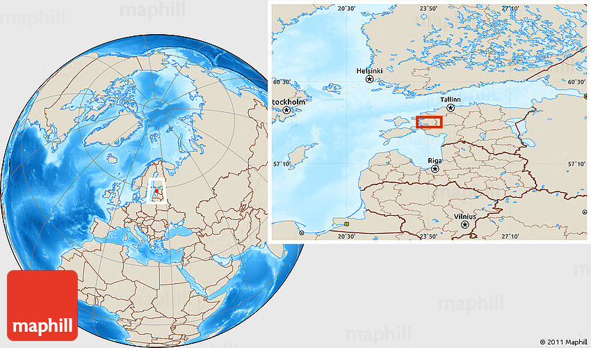 Maphill is a collection of map images. This image combines a shaded relief map with the globe centered on the area around 58° 51' 53" N, 23° 52' 30" E. Use the buttons under the image to switch to different map types.