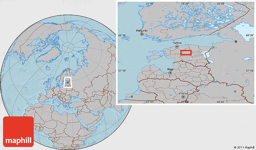 Maphill is a collection of map images. This image combines a gray map with the globe centered on the area around 58° 51' 53" N, 25° 34' 30" E. Use the buttons under the image to switch to different map types.