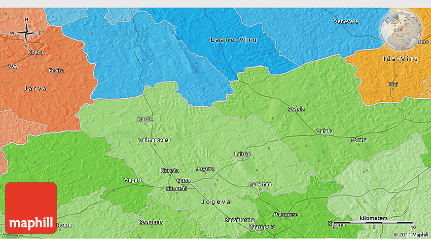 The value of Maphill lies in the possibility to look at the same area from several perspectives. Maphill presents the map of the area around 58° 51' 53" N, 26° 25' 29" E in a wide variety of map types and styles.