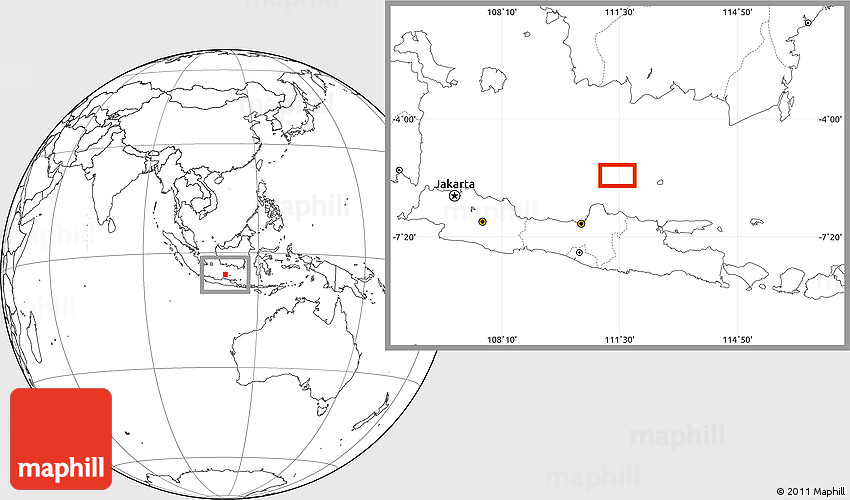 Maphill is a collection of map images. This image combines a blank map with the globe centered on the area around 5° 35' 51" S, 111° 25' 30" E. Use the buttons under the image to switch to different map types.