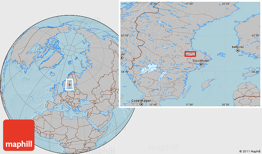 Maphill is a collection of map images. This image combines a gray map with the globe centered on the area around 60° 16' 48" N, 17° 4' 30" E. Use the buttons under the image to switch to different map types.