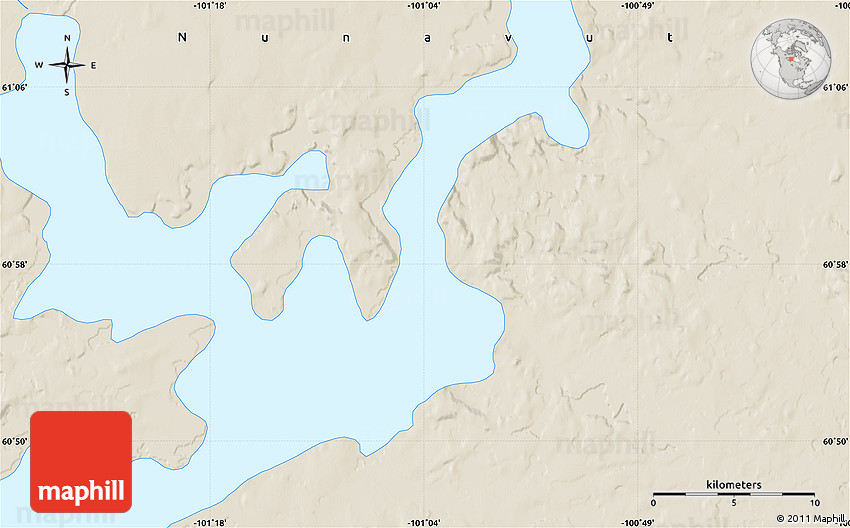 Maphill is a collection of map images. This shaded relief map of the area around 60° 58' 34" N, 101° 4' 29" W is one of them. Click on the Detailed button under the image to switch to a more detailed map.