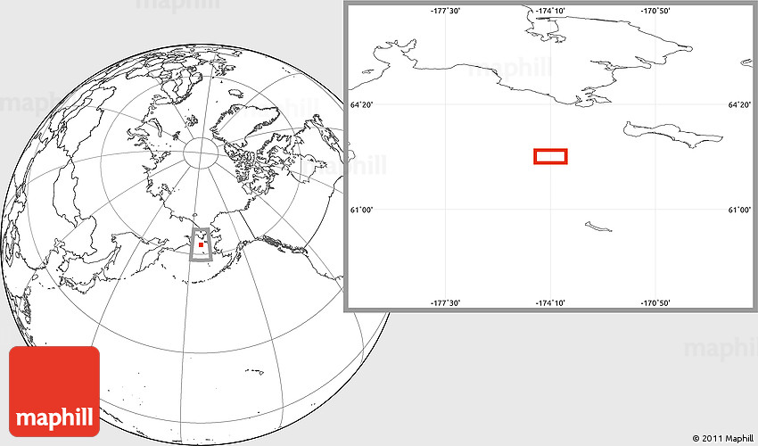 Maphill is a collection of map images. This image combines a blank map with the globe centered on the area around 62° 40' 59" N, 174° 10' 30" W. Use the buttons under the image to switch to different map types.