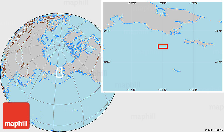 Maphill is a collection of map images. This image combines a gray map with the globe centered on the area around 63° 1' 7" N, 174° 10' 30" W. Use the buttons under the image to switch to different map types.