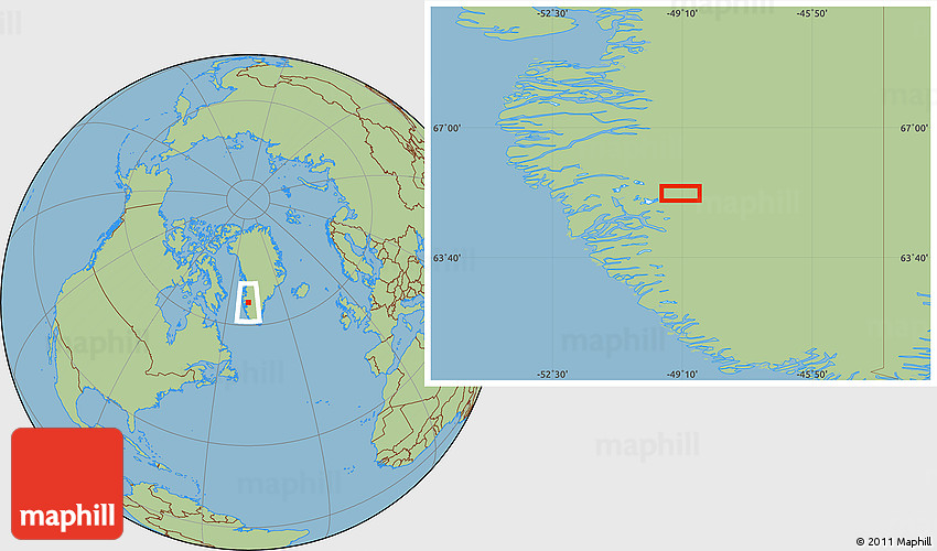 Maphill is a collection of map images. This image combines a savanna style map with the globe centered on the area around 65° 18' 57" N, 49° 13' 30" W. Use the buttons under the image to switch to different map types.