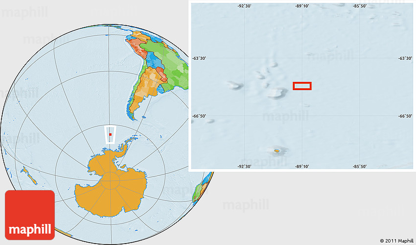 Maphill is a collection of map images. This image combines a political map with the globe centered on the area around 65° 6' 3" S, 89° 10' 30" W. Use the buttons under the image to switch to different map types.