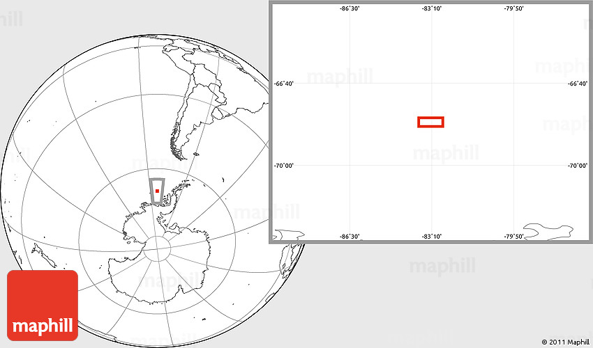 Maphill is a collection of map images. This image combines a blank map with the globe centered on the area around 68° 14' 11" S, 83° 13' 29" W. Use the buttons under the image to switch to different map types.