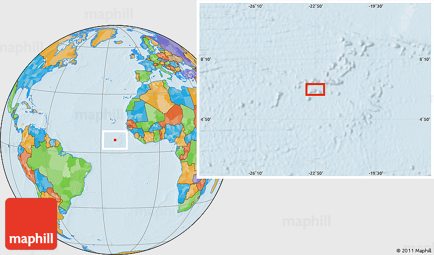 Maphill is a collection of map images. This image combines a political map with the globe centered on the area around 6° 28' 13" N, 22° 52' 30" W. Use the buttons under the image to switch to different map types.