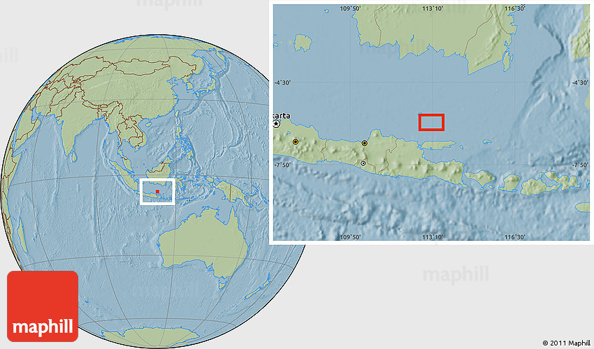 The value of Maphill lies in the possibility to look at the same area from several perspectives. Maphill presents the map of the area around 6° 7' 16" S, 113° 7' 30" E in a wide variety of map types and styles.