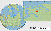 Maphill is a collection of map images. This image combines a physical map with the globe centered on the area around 70° 13' 33" N, 78° 16' 30" E. Use the buttons under the image to switch to different map types.