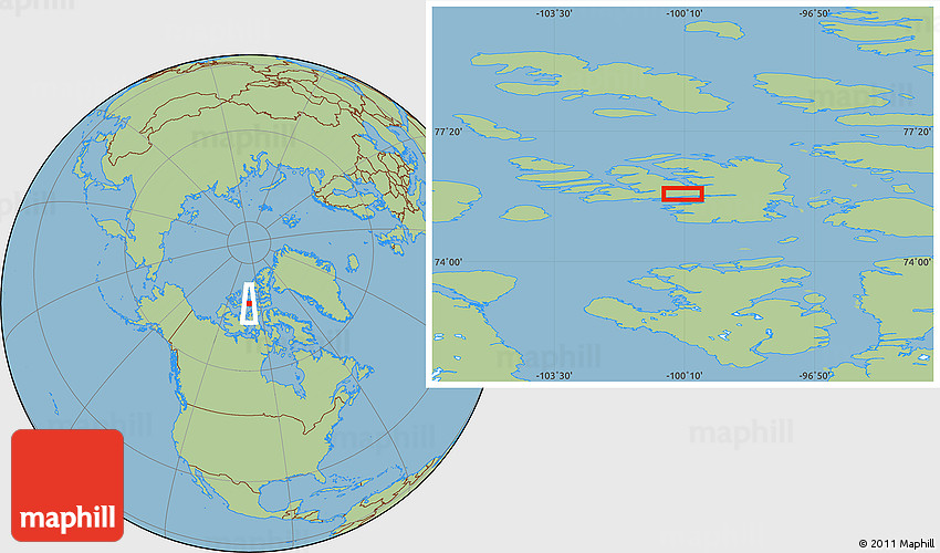 Maphill is a collection of map images. This image combines a savanna style map with the globe centered on the area around 75° 43' 32" N, 100° 13' 29" W. Use the buttons under the image to switch to different map types.