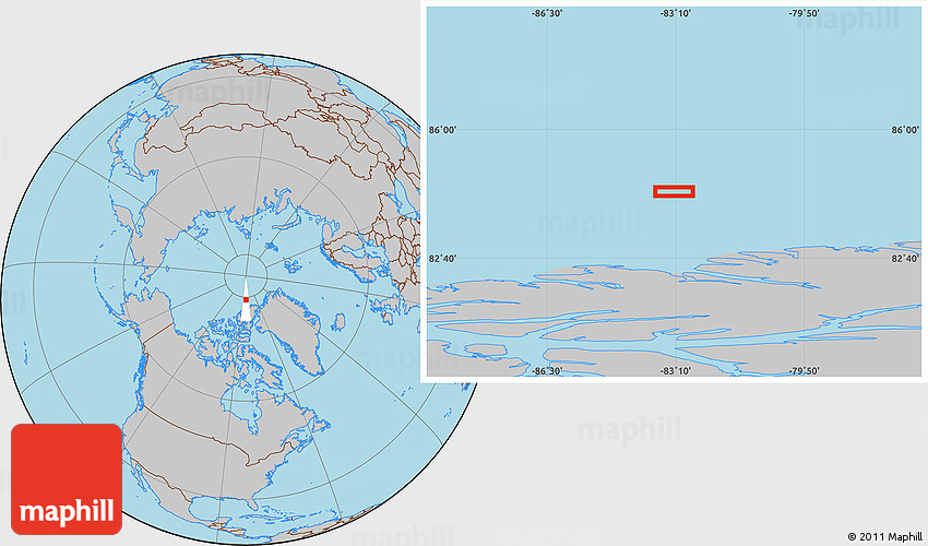 Maphill is a collection of map images. This image combines a gray map with the globe centered on the area around 84° 24' 32" N, 83° 13' 29" W. Use the buttons under the image to switch to different map types.