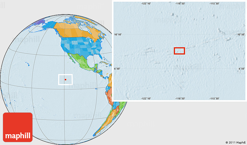 Maphill is a collection of map images. This image combines a political map with the globe centered on the area around 8° 33' 36" N, 118° 55' 30" W. Use the buttons under the image to switch to different map types.