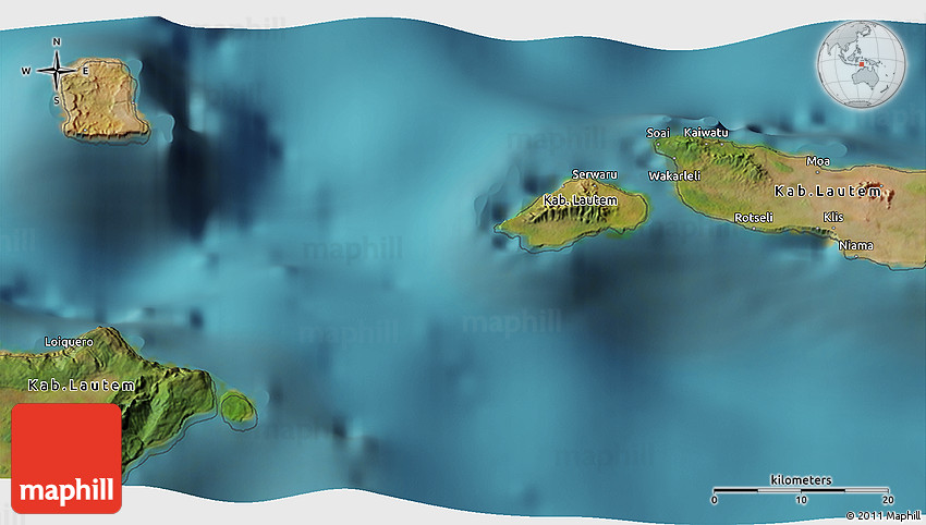 Maphill is a collection of map images. This view of the area around 8° 12' 42" S, 127° 34' 30" E at an angle of 60° is one of these images. Click on the Detailed button under the map for a more comprehensive map.